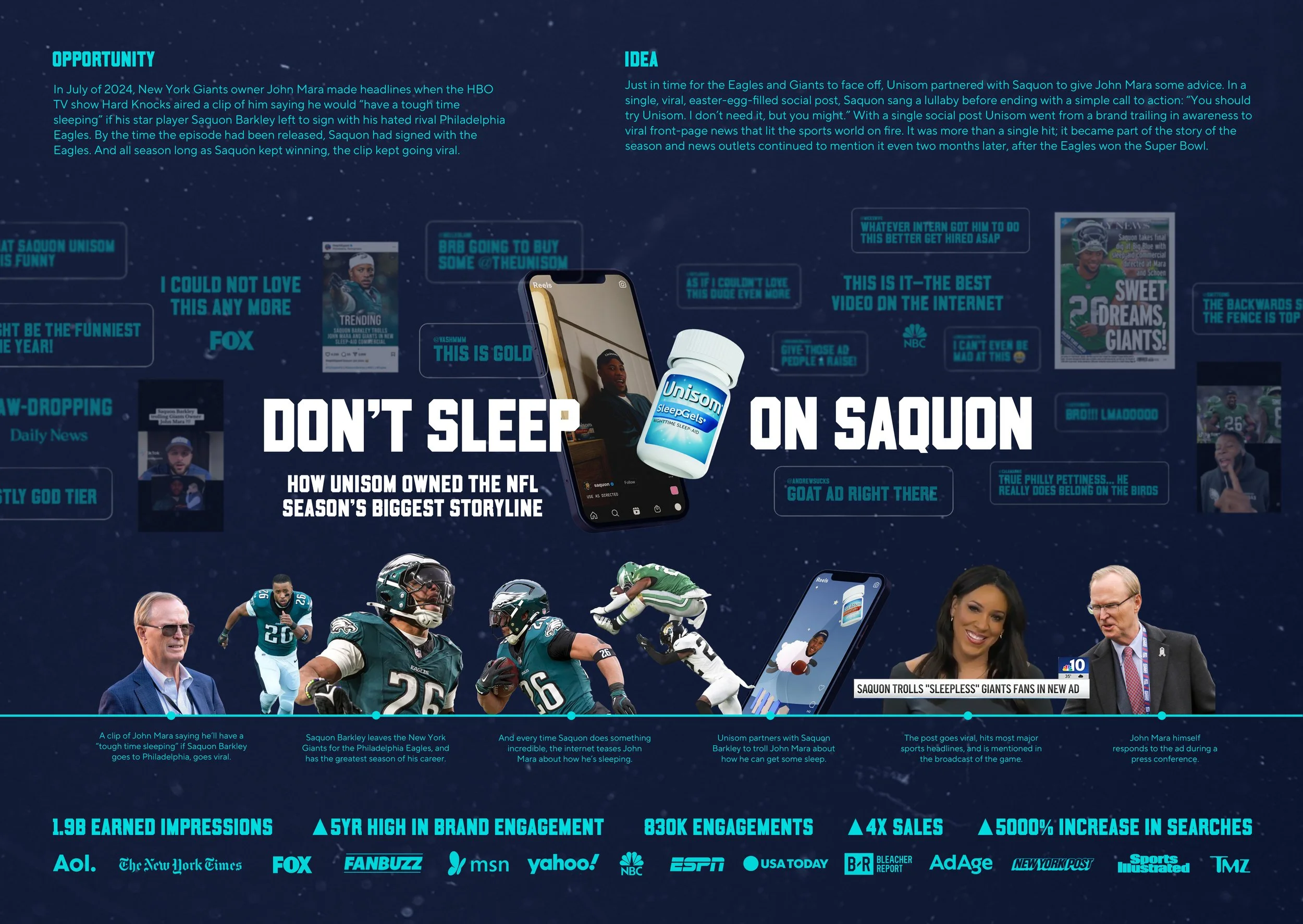 Unisom, a sleep aid, is always looking for ways to help people put their worries to bed. We got our perfect chance when John Mara owner of New York Giants went viral for saying he’s going to have a tough time sleeping if his star player went to their rival team, Philadelphia.
